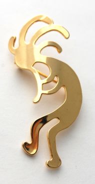 14k gold over sterling silver kokopelli pin. Actual length 2 1/4" Crafted in U.S.A. Semaki & Bird exclusive.