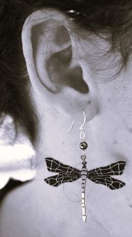 Nickel silver dragonfly earrings are accented with assorted color Swarovski crystals. Actual length 1 1/2" long and 1 3/4" across. Made in U.S.A. Semaki & Bird exclusive.