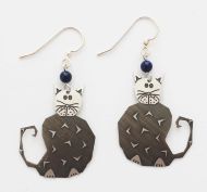 Nickel silver cat earrings are accented with assorted color accent beads or crystals. Made in U.S.A. Semaki & Bird exclusive. Actual length 1 1/4"