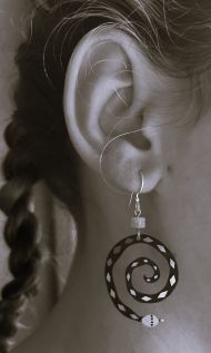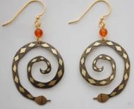 Assorted beads accent our polished brass snake earrings. Actual length 1 1/4" Made in U.S.A. Semaki & Bird exclusive.