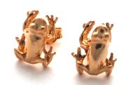 14k gold vermeil posts are mounted on our habitat card. These are large frogs, actual length 1/2"