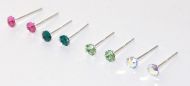 Three pair of Swarovski crystal post earrings twinkle on our foldover snowflake card. Sterling silver.
