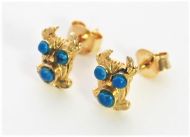14k gold vermeil owl earrings are accented with assorted semi-precious stones (malachite, lapis, onyc, turquoise).