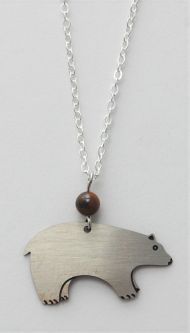 Silver bear pendant hangs from an 16 inch sterling silver plate chain. Made in U.S.A. Semaki & Bird exclusive.