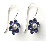 A genuine cultured pearl is the center of our Swarovski crystal and sterling silver post earrings.