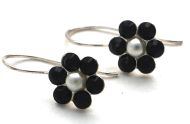 A genuine pearl forms the center of our Swarovski crystal flower earrings. Sterling silver mounted on foldover cards.