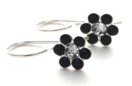 Jet Swarovski crystal flowers are mounted on our Northern Lights cards. Sterling silver.