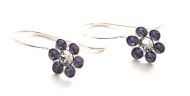 Swarovski tanzanite crystal flower french wire earrings are mounted on our Northern Light cards. Sterling silver.