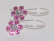 Swarovski crystals are the petals of our sterling silver french wire earrings. Mounted on our stand up card.