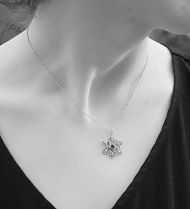 Sapphire Swarovski crystal accents our intricate sterling silver snowflake pendant. 16" sterling silver bead chain, mounted on our snowflake card. Actual length of snowflake, 1"