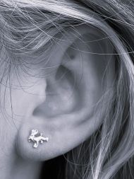 Sterling silver rabbit posts are mounted on our bunny fold over cards.
