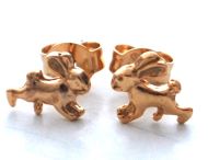 14k gold vermeil rabbit post earrings are mounted on our bunny cards.