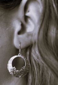 Oak and Maple leaves are delicately etched into our solid sterling hoop earrings. Semaki & Bird exclusive design. Crafted in New England. 1" diameter.