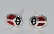 Sterling silver ladybug post earrings mounted on our foldover Organic Matters cards