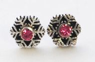 Rose Swarovski crystals are set in the center of our sterling silver snowflake post earrings. Our foldover card has an educational message about snowflakes on the back.