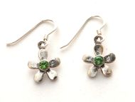 Sterling silver flower earrings with peridot Swarvovski crystal center. Actual width 1/2"