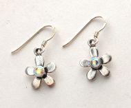 Sterling silver flower earrings with aurora crystal center. Actual width 1/2"