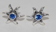 An Sapphire Swarovski crystal is the center of our Alaskan wildflower sterling silver post earrings. Educational message about wildflowers in Alaska on back of card.