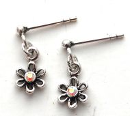 An Aurora Swarovski crystal is the center of our Alaskan wildflower sterling silver post earrings. Educational message about wildflowers in Alaska on back of card.