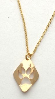 14k gold over sterling silver Wolf Track Pendant hangs from 16" gold fill chain