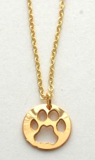 14k gold over sterling silver Mountain Lion Track Pendant hangs from 16" gold fill chain