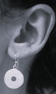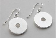 Sterling silver plate circle dangle earrings mounted on our Abstracts card. Diameter 3/4 inch. Dangle length 1 1/4 inches.