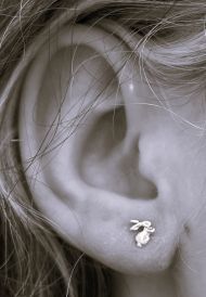 Bunny post earrings sterling silver. Mounted on our Garden Party carrot card.