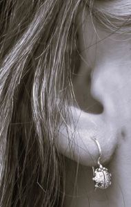 Ladybug french wire earrings 14k gold over sterling silver. Mounted on our Garden Party pear card.