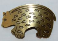 Our brushed brass pin is crafted in U.S.A. Actual size 2 inches from snout to tail.