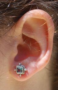 Sterling silver and blue topaz earrings are mounted on our Dragonfly Antique Etching card.