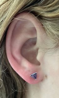 Sterling silver and amethyst earrings are mounted on our Starfish Antique Etching card.