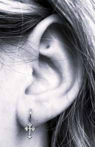 Sterling silver Cross french wire earrings are mounted on our Blessed Inspirational Card.