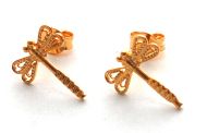 14k gold over sterling silver dragonfly (or mosquito :) studs mounted on our exclusive foldover Natural History cards. Educational information on back of card. "Alaska" name drop on front of card.