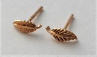 14k gold over sterling silver Leaf stud earrings are mounted on our "Books are Magical" "Jody's Books" cards.