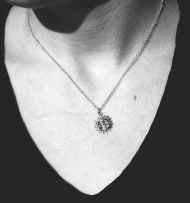 14k gold over sterling silver Sun pendant hangs from a 16 inch gold plate chain. Necklace mounted on our exclusive colorful "Frida" cards. Card size 3 1/2 inches x 3 inches.