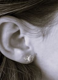 14k gold over sterling silver bee earrings mounted on our exclusive foldover Natural History cards. Educational information on back of card.