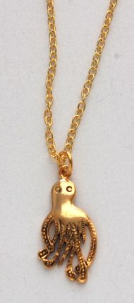 14k gold over sterling silver Octopus Pendant on 16" gold fill chain