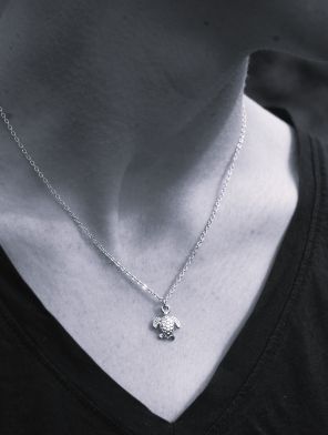 Sterlign silver plate Sea Turtle Pendant on 16" sterling silver plate chain.
