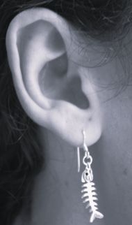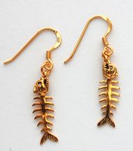 14k gold over sterling silver fish skeleton french wire earrings mounted on our exclusive foldover Natural History cards. Educational information on back of card. Fish length 1 inch.