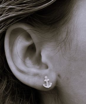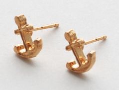 14k gold plate Anchor stud earrings mounted on our exclusive foldover Natural History cards. Educational information about sailing boats on back of card. Made in U.S.A.