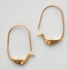 14k gold over solid sterling silver silver bird earrings are usually worn from back to front. Ear wires 14k gold over sterling silver. The bird earrings are mounted on our exclusive tent Natural History cards. Actual length 1 1/4" These look amazing on!