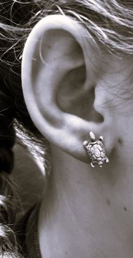 14k gold over sterling silver turtle earrings mounted on our exclusive foldover Natural History cards. Educational information on back of card.