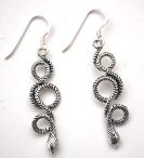 Sterling silver snake earrings mounted on our exclusive fold over Natural History cards. Actual length 1 1/2 inches. Educational information about snakes on back of card.