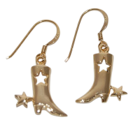 14k gold over sterling silver Cowboy boots french wire earrings mounted on our exclusive foldover Natural History cards. Educational information about horses on back of card. Drop length 1 inch. Boot length 1/2 inch