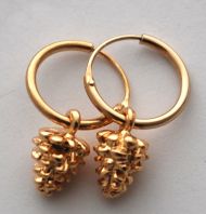 Gold Pine cones dangle from our 14k gold over sterling silver hoops. Pine cone earrings are mounted on our exclusive tent pine cone Natural History cards. Pine cone length 1/4 inches, hoop diameter 1/2 inch. Educational information about pine cones on back of card. Semaki & Bird exclusive. Made in U.S.A.