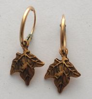 Gold maple leaves dangle from our 14k gold over sterling silver hoops. 14k gold plate Maple earrings are mounted on our exclusive tent Natural History cards. Maples, 1/2 inch width. Hoop diameter 1/2 inch. Educational information about maples on back of our recycled paper tent card. Semaki & Bird exclusive. Made in U.S.A.