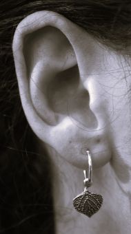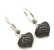 Silver aspen leaves dangle from sterling silver hoops. Our aspen earrings are mounted on our exclusive tent Natural History cards. Aspens, 1/2 inch width. Hoop diameter 1/2 inch. Educational information about aspens on back of our recycled paper tent card. Semaki & Bird exclusive. Made in U.S.A.