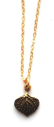14k gold plate Aspen Pendant on 16 inch gold fill chain. Mounted on our exclusive tent Natural History cards. Educational information about aspens on back of our tent card.