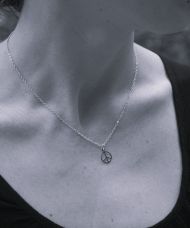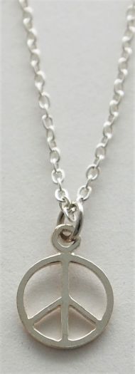 Sterling silver Peace Sign Pendant on 16 inch sterling silver plate chain. Peace sign diameter 3/8 inch.Mounted on our exclusive tent Natural History cards. Educational information about Buddha on back of card.