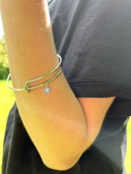 Adjustable Silver Bracelet - Forget Me Not Flower Swarovski crystal sterling silver charm. Bracelet made in USA. Alaska Forget Me Not story card attached.